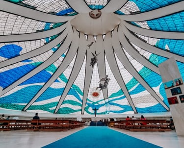 Interior da Catedral de Brasília, Projetada pelo Arquiteto Oscar Niemeyer. Foto retirada da Internet.